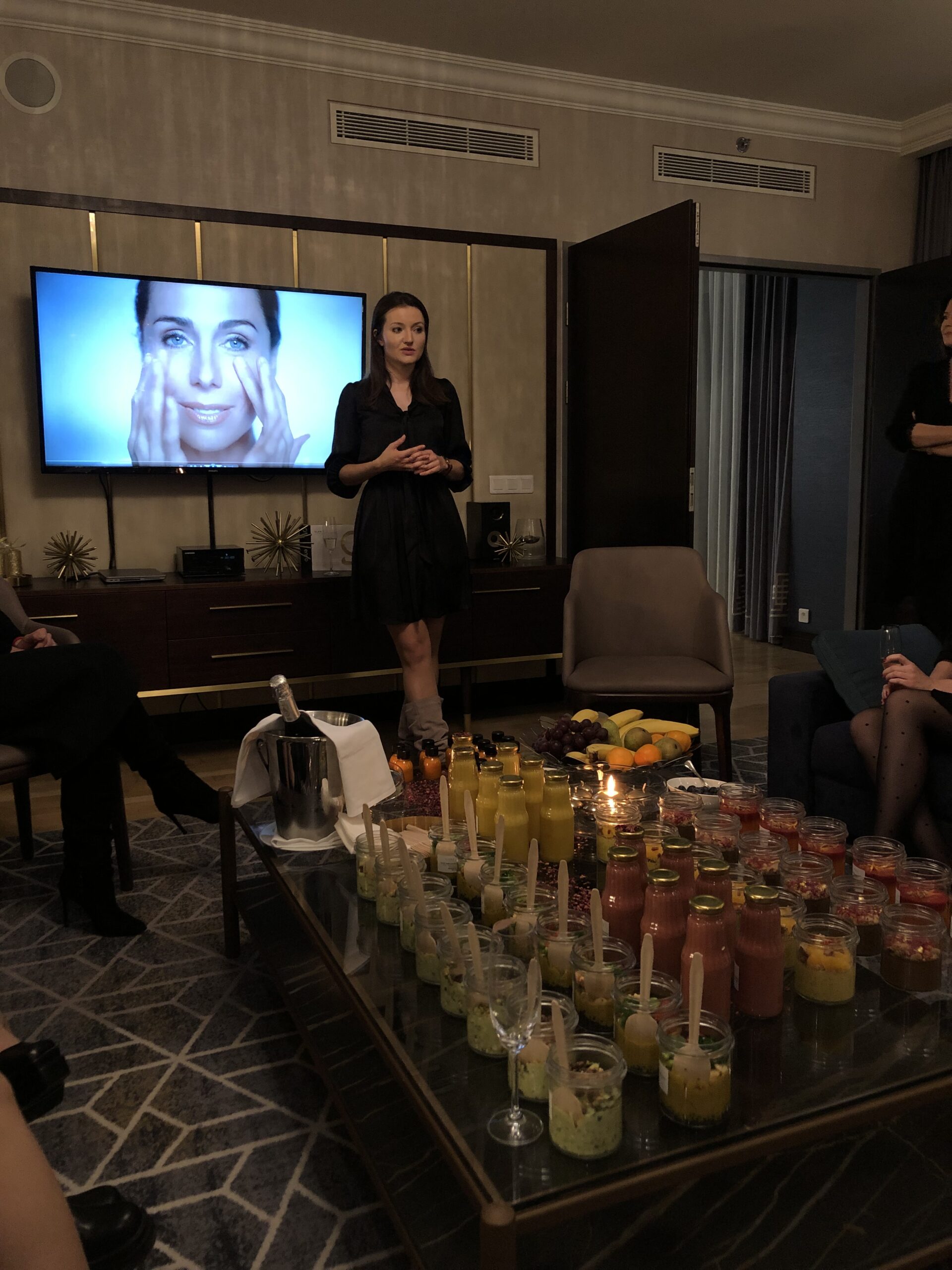 Kolejnym etapem była prezentacja produktu oraz pokaz zabiegu na żywo. Justyna Pawłowicz (Starsza Specjalistka Medyczna) zaprezentowała produkt, opowiedziała o działaniu, składnikach aktywnych i spodziewanych efektach. Następnie na modelce pokazano każdy etap zabiegu.