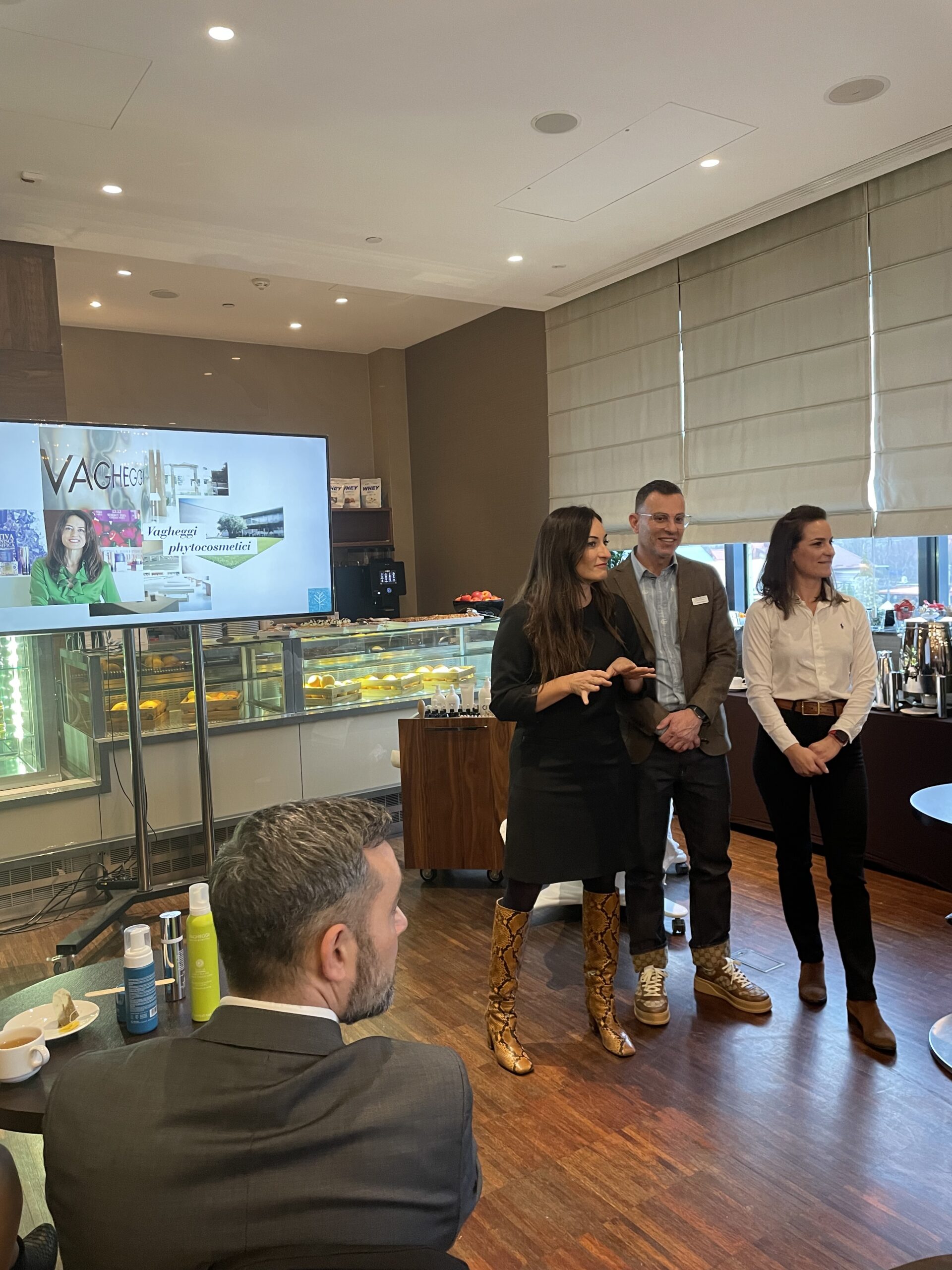 Podczas spotkania Alessio Ambru wraz z Ericą Furlan przedstawili misję i podkreślili najważniejsze wartości, którymi się kieruje – zrównoważenie środowiska i człowieka, czerpanie z natury, dążenie do doskonałości towarzyszy zastosowanie innowacyjnych technologii formuł, które zwielokrotniają potencjał obecnych w przyrodzie składników aktywnych, dając widoczne, długotrwałe rezultaty.