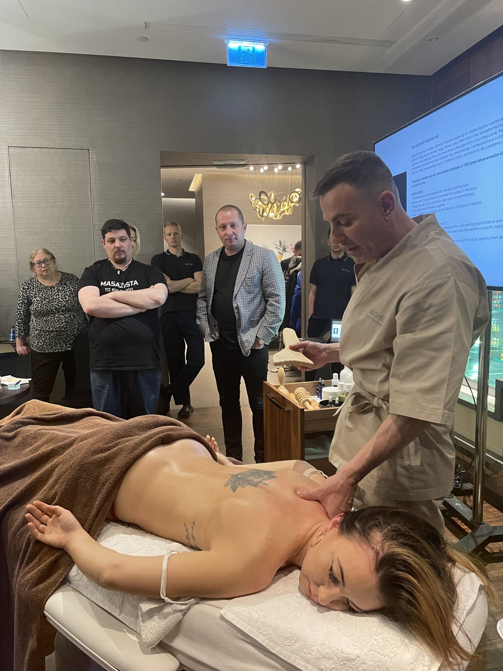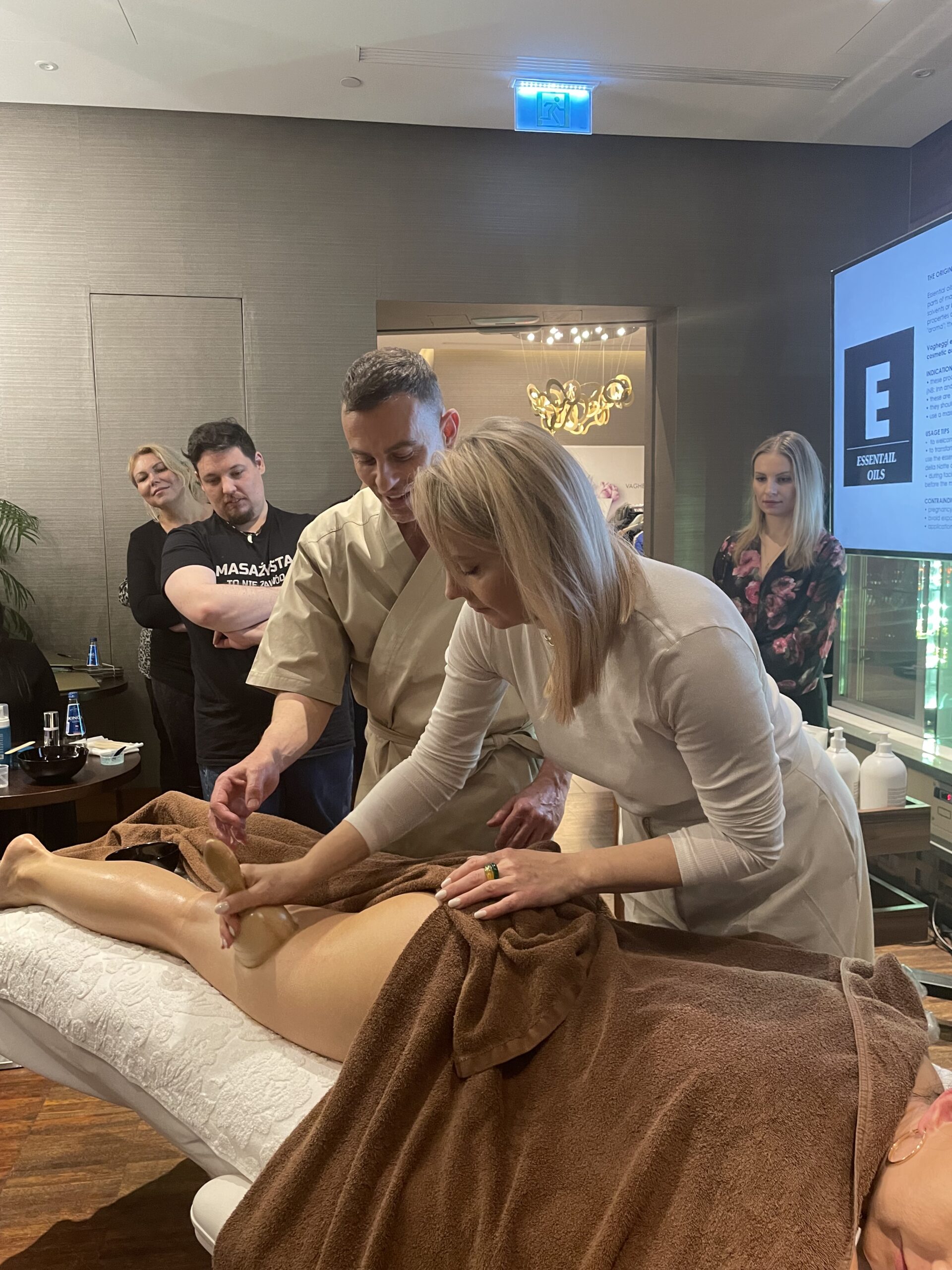 Paulina Gugała (Team Leader Beauty Care) wraz z zespołem zaprezentowała bogatą ofertę produktów oraz zabiegów, a także ofertę SPA Menu, która jest gotowym rozwiązaniem dla klientów. Niewątpliwie jednym z najciekawszych momentów była spektakularna Maderoterapia, czyli manualny drenaż limfatyczny z intensywnym masażem za pomocą specjalnych, anatomicznie zaprojektowanych drewnianych narzędzi, a została poprowadzona przez gości z Włoch.